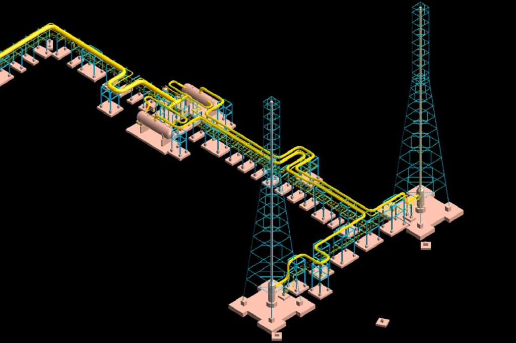 مدلسازی کلیه تجهیزات ثابت شامل درامها و استاک و دریک فلر، فنداسیونها ، لوله کشی , ادوات ابزار دقیق ، ساپورتهای کلیه  قسمت ها
